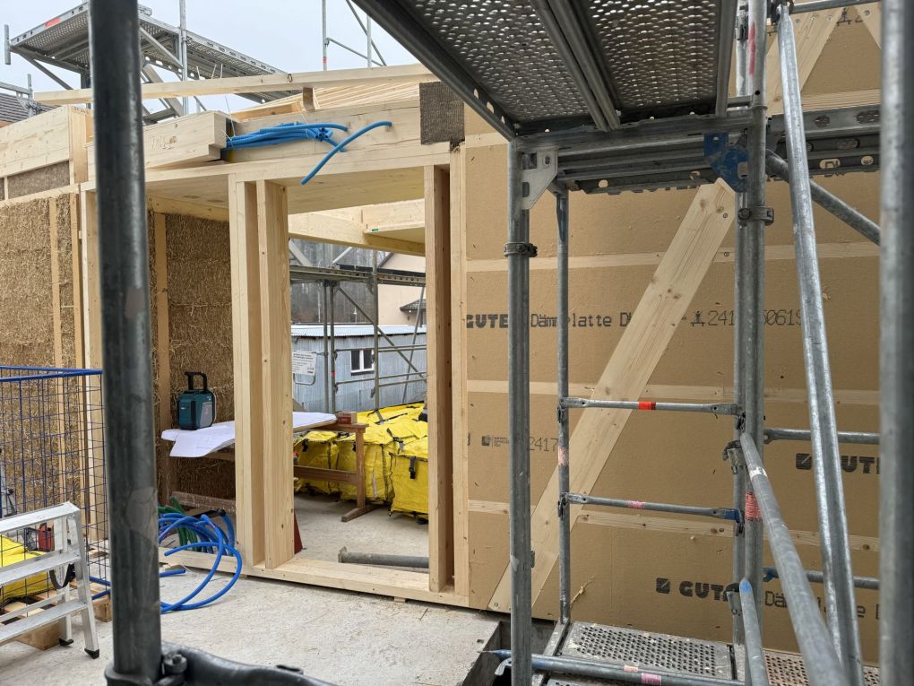 Bei der neuen Kita Zwirbelzwerg in Riedholz setzen wir auf eine Bauweise, die Tradition und Innovation verbindet: Holzständerbauweise mit Strohdämmung. Damit schaffen wir nicht nur ein gesundes Raumklima für die Kinder, sondern leisten auch einen aktiven Beitrag zum Klimaschutz.