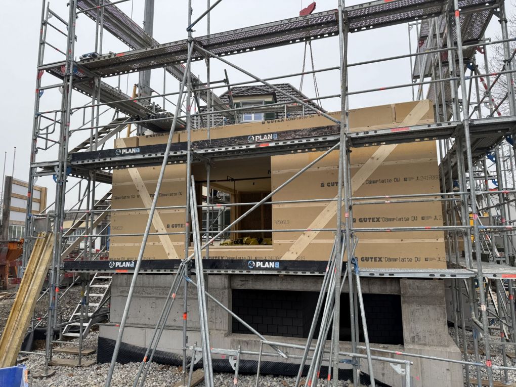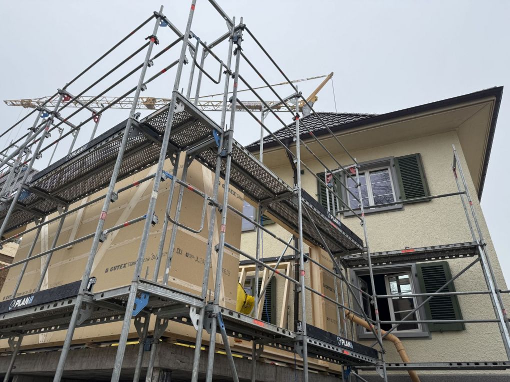 Auch am Anbau ging es zügig voran: Die Fenster sind montiert – damit nimmt der Neubau nicht nur optisch Form an, sondern kommt auch dem geplanten Innenausbau ein grosses Stück näher.