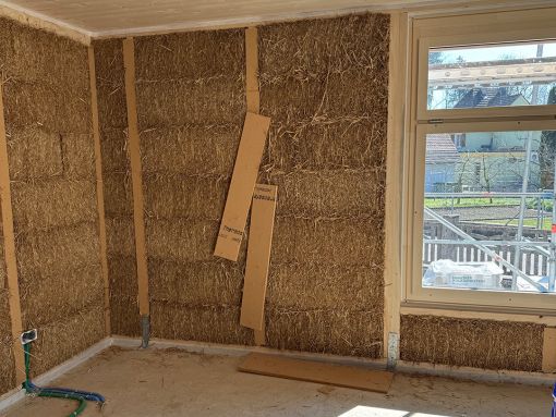 Stroh als Dämmstoff überzeugt mit hervorragenden Wärmeeigenschaften, stammt aus der Region und ist vollständig biologisch abbaubar. In Kombination mit Holz aus nachhaltiger Forstwirtschaft entsteht so ein Gebäude, das nicht nur durch seine Funktion, sondern auch durch seine ökologische Qualität überzeugt.
